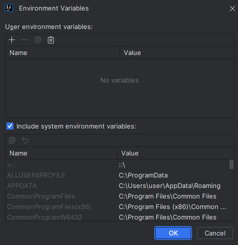 Modify options > operationg System > Environment variables를 누르면 나온다.